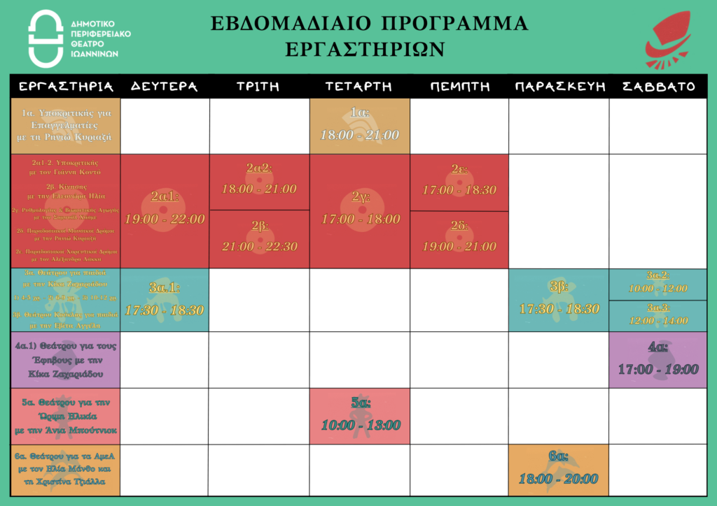 Ανακοινώνεται το εβδομαδιαίο πρόγραμμα των εργαστηρίων.
