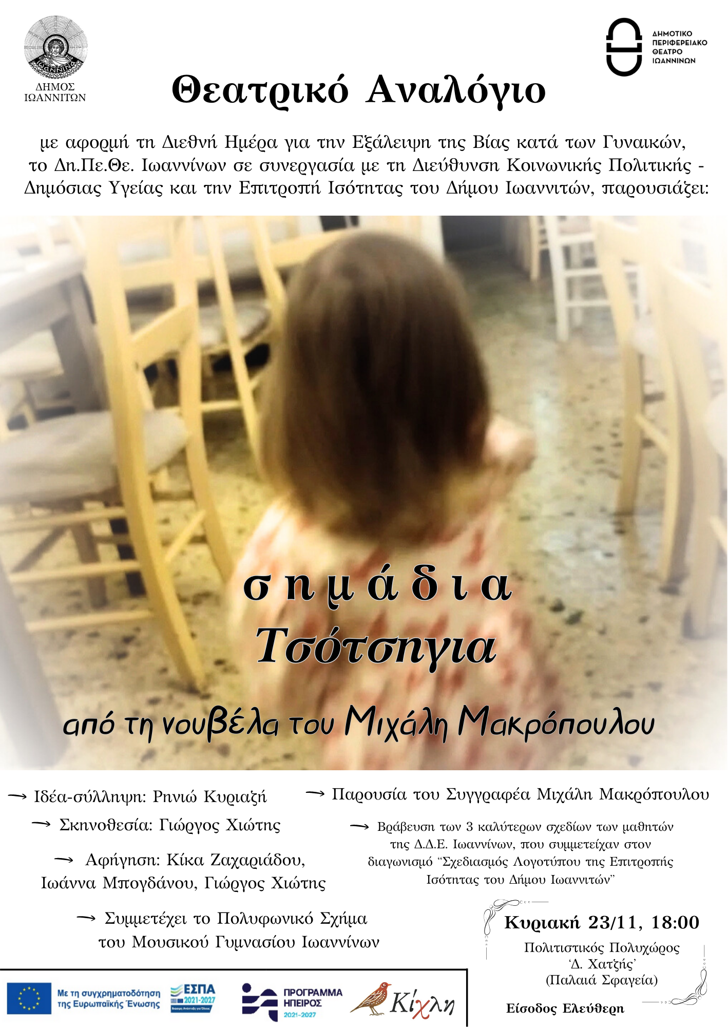 Το Δημοτικό Περιφερειακό Θέατρο Ιωαννίνων σε συνεργασία με τη Διεύθυνση Κοινωνικής Πολιτικής – Δημόσιας Υγείας και την Επιτροπή Ισότητας του Δήμου Ιωαννιτών,